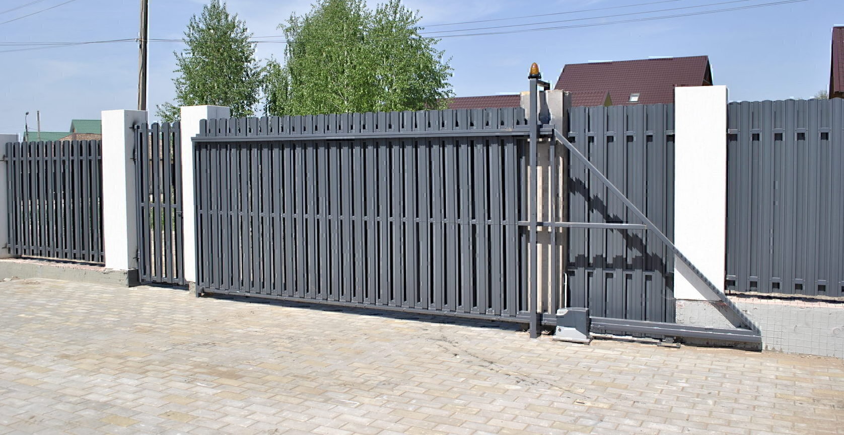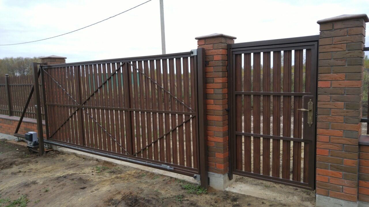 Недорогие ворота откатные из евроштакетника в Хотьково